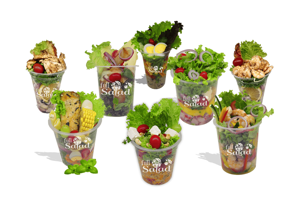 A Full Salad é onde a variedade e qualidade se encontram em um copo gigante! São muitas opções de saladas completas que substituem aquela refeição pesada. Nossas saladas vão além dos legumes e verduras frescos que você espera, pois são complementadas com uma mega porção de proteína.